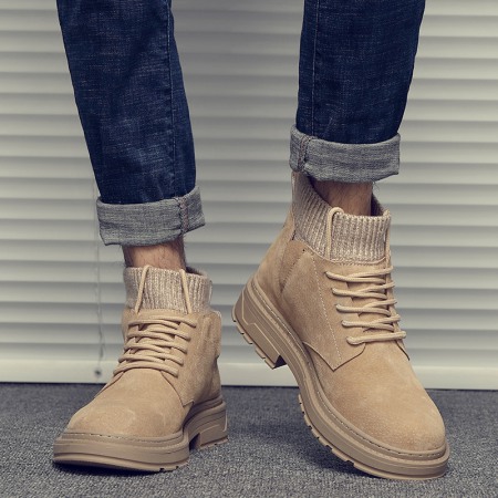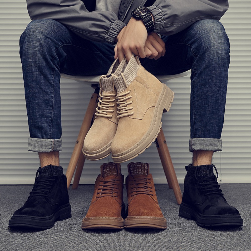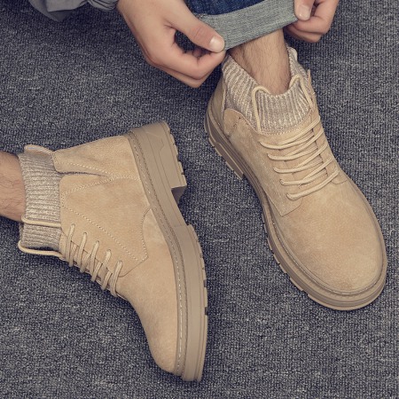 Men's High Top Shoes Leather Casual Martin Boots Leather Shoes Autumn Trendy Shoe