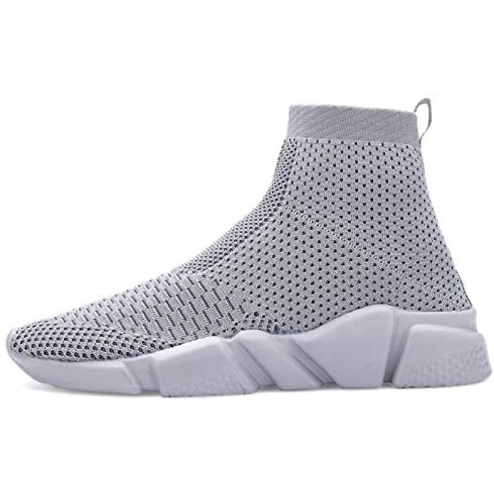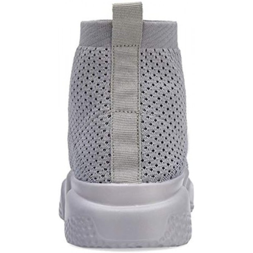 Men's Running Shoes Breathable Knit Slip On Sneakers Lightweight Athletic Shoes Casual Sports Shoes High Top All Grey